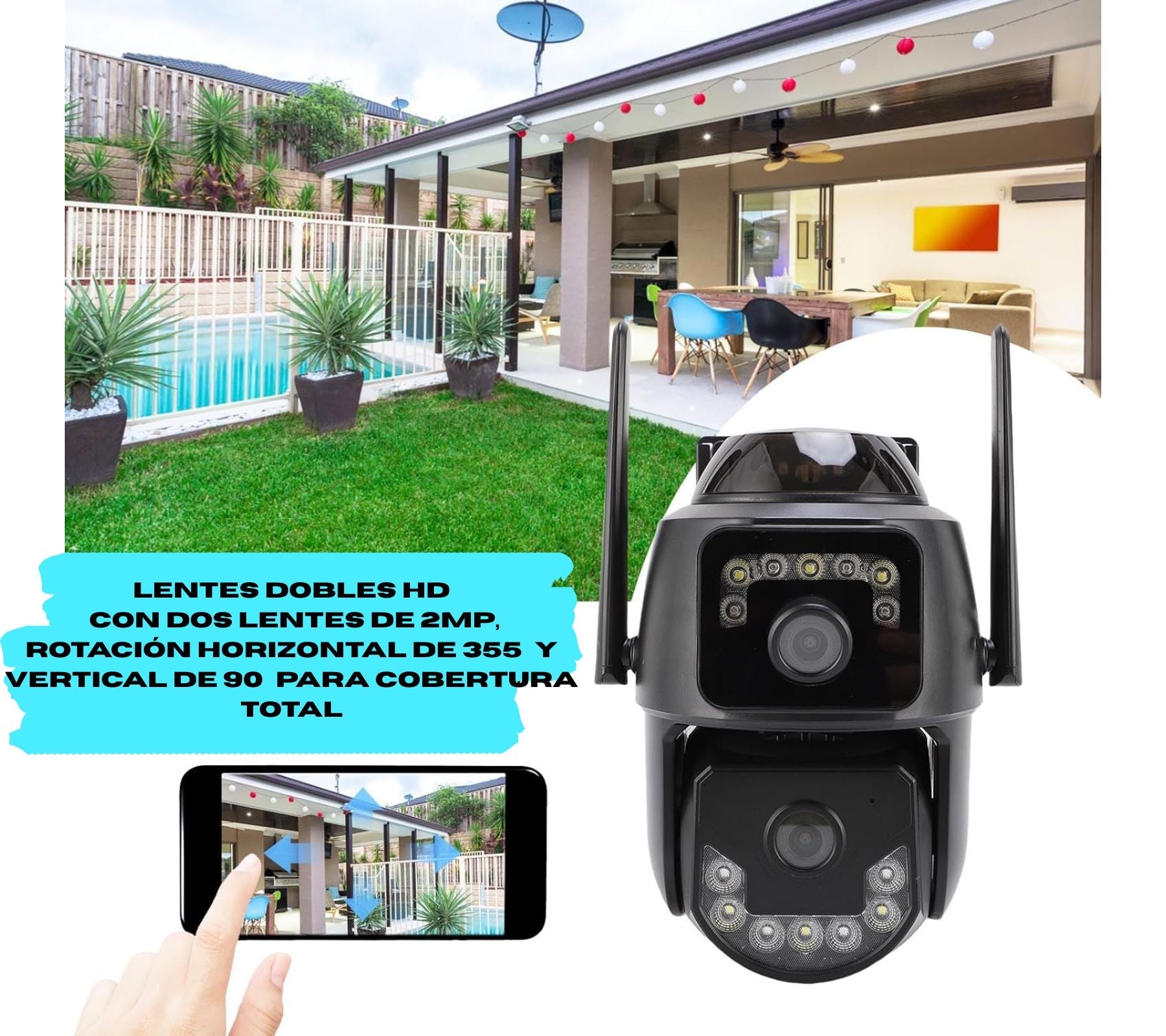 Sus lentes duales HD de 3MP + 3MP ofrecen una cobertura completa de 355° en horizontal y 90° en vertical. Captura cada detalle con apertura f/1.4 y lente gran angular de 2.8 mm, incluso en condiciones de poca luz.